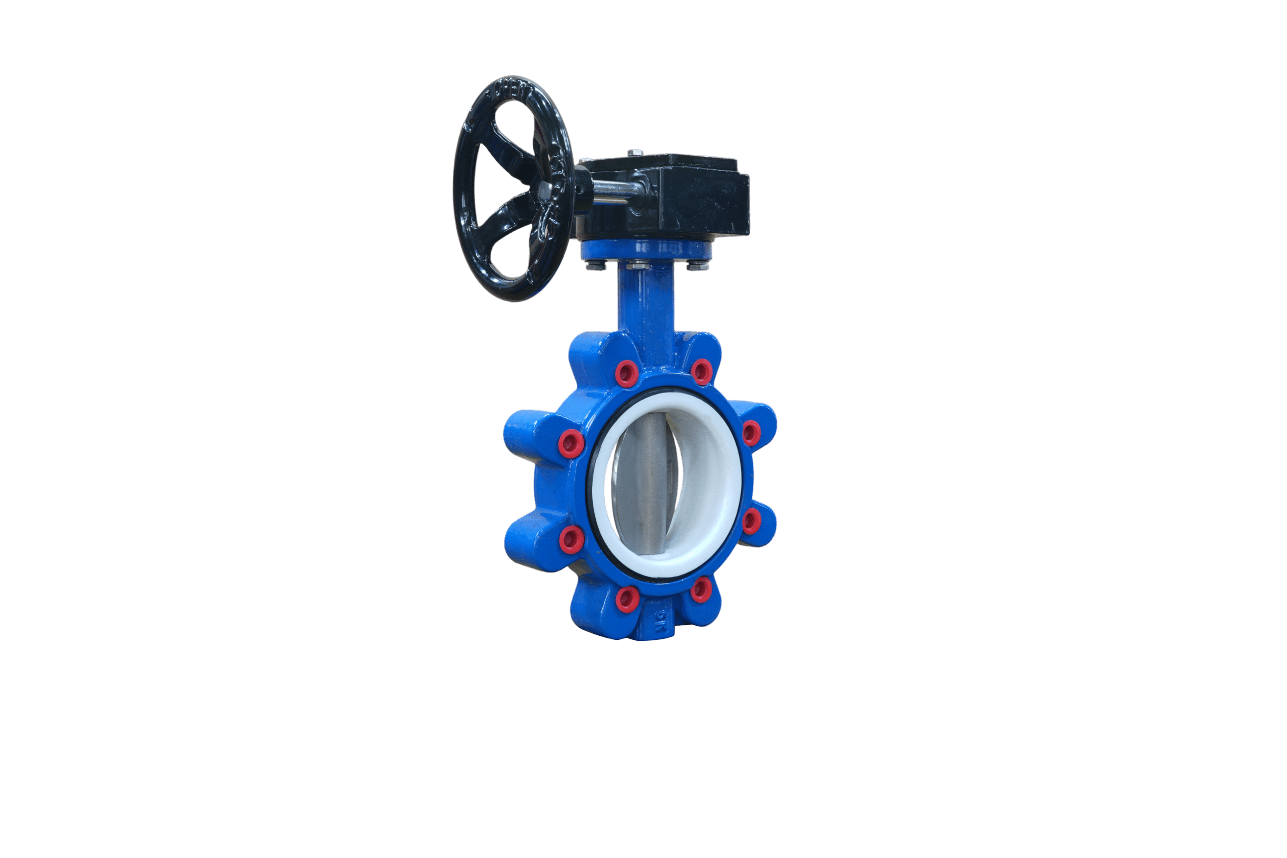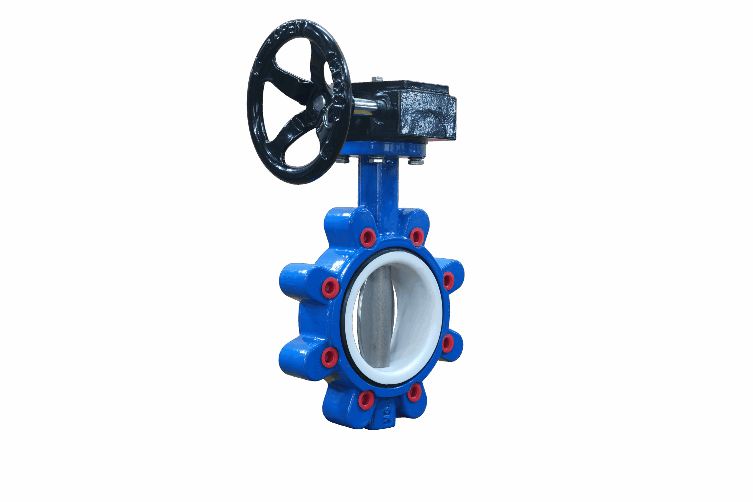 Lug дисковый затвор с диском SS316, седлом PTFE и редуктором предназначен для функции открытия и закрытия потока в водопроводных и промышленных трубопроводных системах, где требуется коррозионная стойкость и химическая совместимость материалов. Диск из нержавеющей стали SS316 обеспечивает повышенную устойчивость к коррозионным средам, а седло PTFE гарантирует стабильную герметичность и низкое трение при работе, особенно в случаях, когда применение эластомерных седел может быть нежелательным.